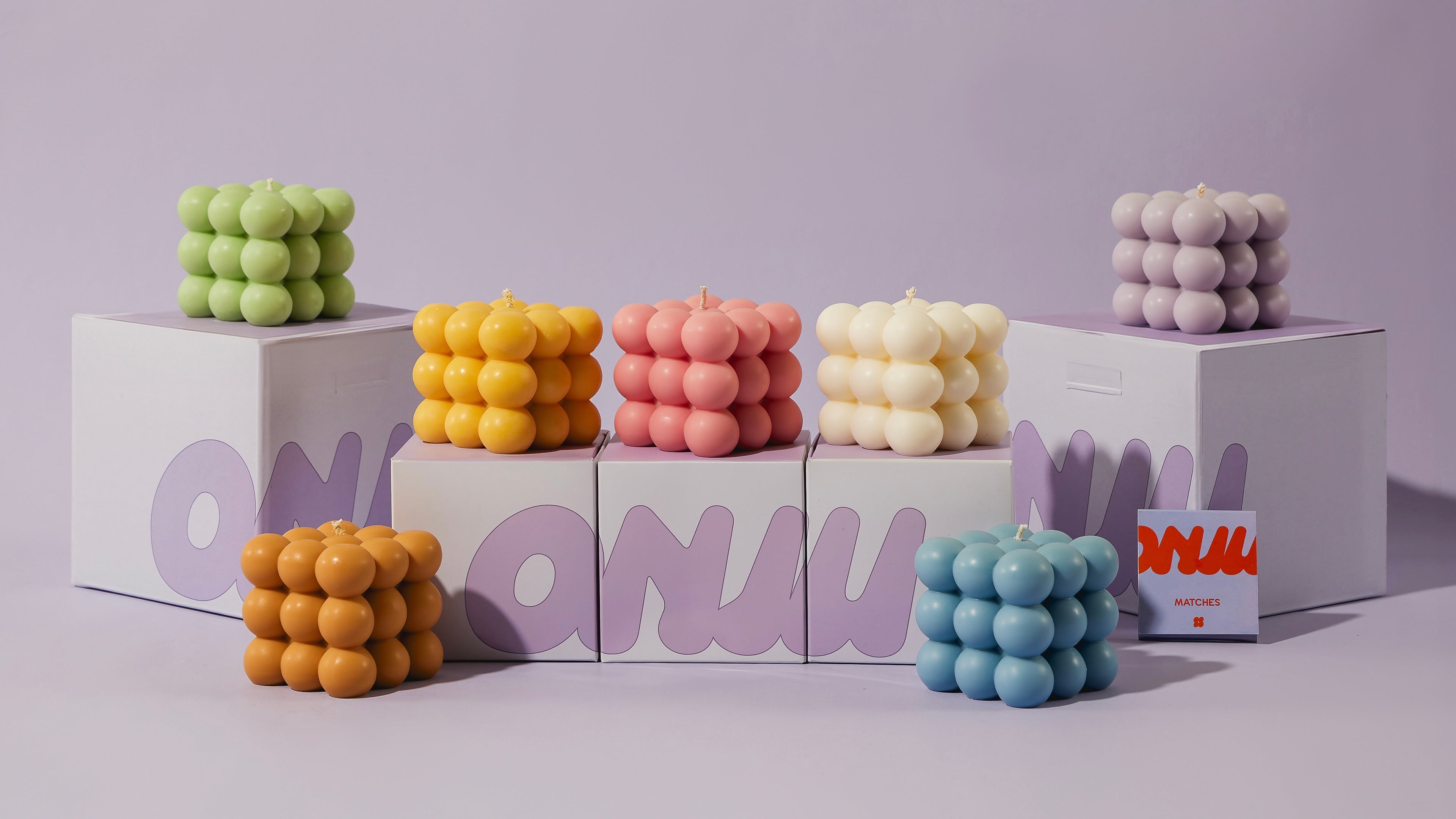 Our colourful signature Onju Bubble Candle is a standalone piece made from natural soy wax and infused with fragrance oil.