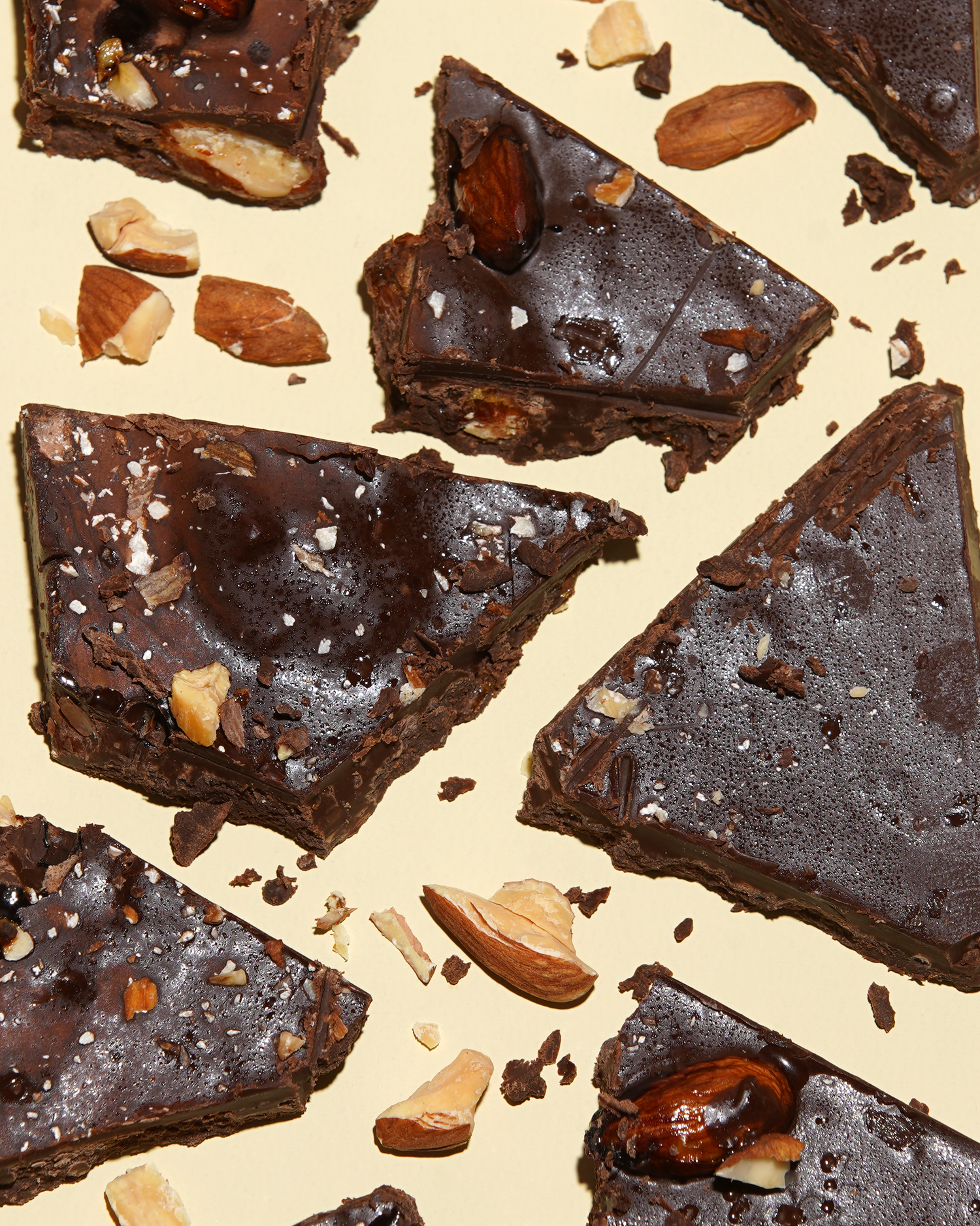 80% dark chocolate, coconut oil, brown sugar, organic whole almonds, sea salt flakes