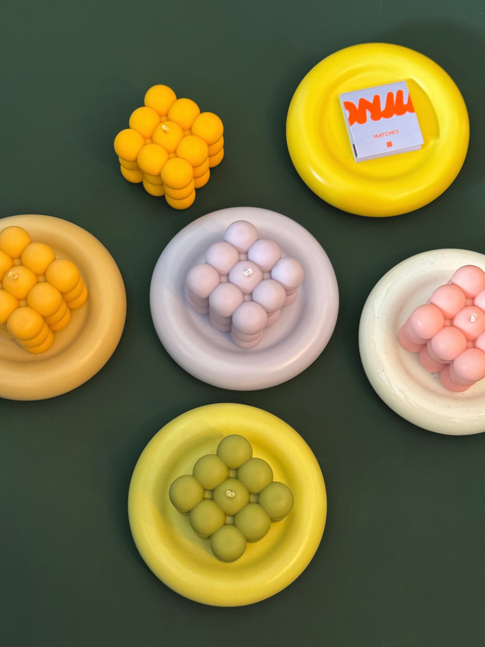 Ceramic glazed chunky plates to place your Onju candle on to avoid wax spills